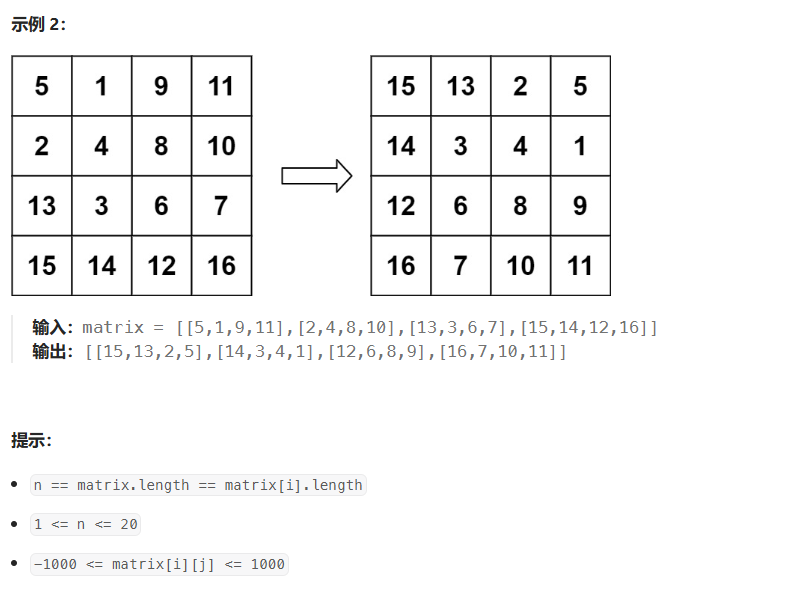 matrix[bottom][right-i] = matrix[top+i][right]# 右上角的元素移动到右下角