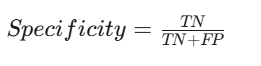 - 定义:模型预测为负类且正确的样本数占实际为负类的样本总数的比例。